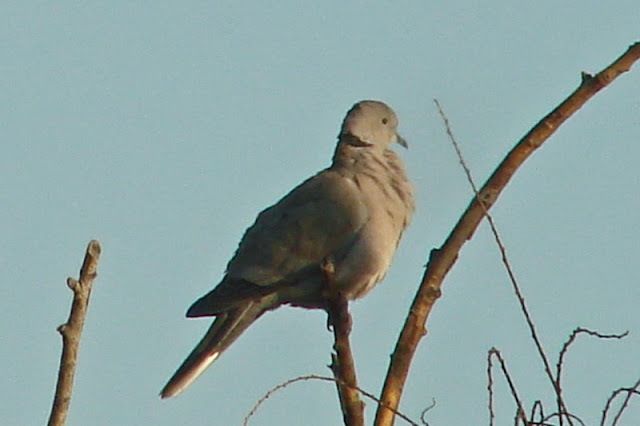 With Ringed Turtle-Doves often escaping, and Eurasian Collared-Doves rapidly expanding, either could show up at a bird feeder. All the sources I consulted caution about how easily the two can be confused. So ... if you see a dove with a black collar on the back of its neck, you’ll know that you have either a Ringed Turtle-Dove or a Eurasian Collared-Dove. Then you’ll have the fun of figuring out which one - an exercise that always makes for interesting birding!